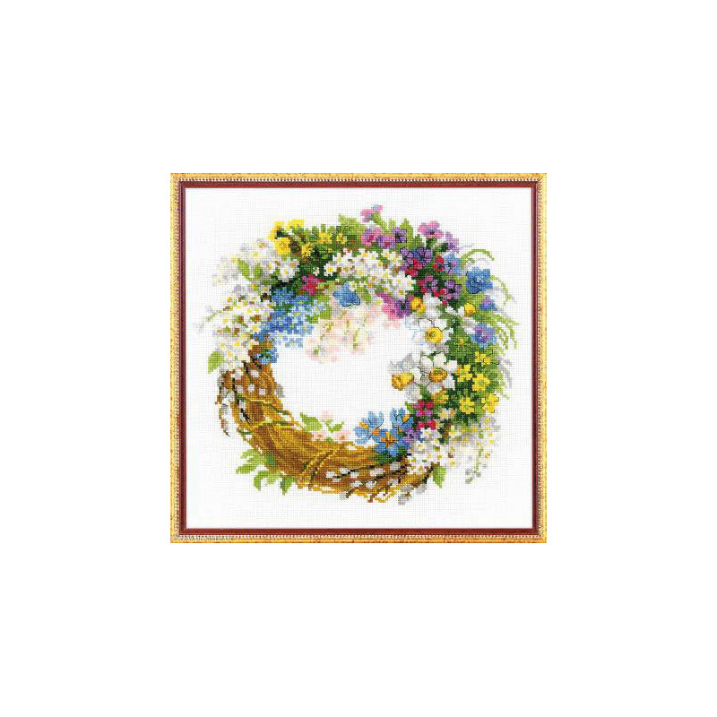 L'article 'Riolis, kit Wreath with Bird Cherry (RI1536)' fait partie de notre assortiment depuis le 24 novembre 2015. La gamme Riolis nous vient de Lituanie et propose une grande diversité de kits de points de croix comptés : paysages, animaux, saisons, modèles modernes et rétros, kits faciles et avec perles, reproduction de tableaux de maîtres. Sa particularité est essentiellement d'utiliser pour la plupart de ses kits de la laine très fine, idéale pour donner un aspect soyeux à la broderie. Pensez à bien regarder dans "plus de détails" du kit qui vous intéresse si le kit est avec laine ou mouliné. Tous les kits sont livrés avec de l'aïda 5,5 points/cm (Aïda 14) ou plus large (marqué aïda 10). il est cependant facile changer de trame, sauf pour les quelques kits ou l'aïda est imprimé par un dessin dans le fonds (références commençant par RIPT). Les kits mentionnés comme "facile" le sont car ils sont brodés sur de l'aïda 4.5 points/cm, mais ne sont pas conseillés pour un premier ouvrage d'enfant, car la plupart sont livrés avec de la lainev :-) Explication en russe et en anglais