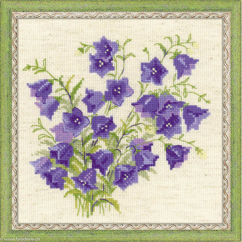 L'article 'Riolis, kit Bellflowers (RI1557)' fait partie de notre assortiment depuis le 18 mars 2016. La gamme Riolis nous vient de Lituanie et propose une grande diversité de kits de points de croix comptés : paysages, animaux, saisons, modèles modernes et rétros, kits faciles et avec perles, reproduction de tableaux de maîtres. Sa particularité est essentiellement d'utiliser pour la plupart de ses kits de la laine très fine, idéale pour donner un aspect soyeux à la broderie. Pensez à bien regarder dans "plus de détails" du kit qui vous intéresse si le kit est avec laine ou mouliné. Tous les kits sont livrés avec de l'aïda 5,5 points/cm (Aïda 14) ou plus large (marqué aïda 10). il est cependant facile changer de trame, sauf pour les quelques kits ou l'aïda est imprimé par un dessin dans le fonds (références commençant par RIPT). Les kits mentionnés comme "facile" le sont car ils sont brodés sur de l'aïda 4.5 points/cm, mais ne sont pas conseillés pour un premier ouvrage d'enfant, car la plupart sont livrés avec de la lainev :-) Explication en russe et en anglais