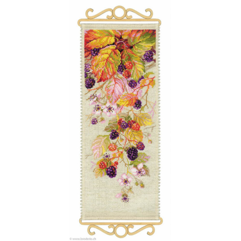 L'article 'Riolis, kit Blackberry (RI1550)' fait partie de notre assortiment depuis le 21 avril 2016. La gamme Riolis nous vient de Lituanie et propose une grande diversité de kits de points de croix comptés : paysages, animaux, saisons, modèles modernes et rétros, kits faciles et avec perles, reproduction de tableaux de maîtres. Sa particularité est essentiellement d'utiliser pour la plupart de ses kits de la laine très fine, idéale pour donner un aspect soyeux à la broderie. Pensez à bien regarder dans "plus de détails" du kit qui vous intéresse si le kit est avec laine ou mouliné. Tous les kits sont livrés avec de l'aïda 5,5 points/cm (Aïda 14) ou plus large (marqué aïda 10). il est cependant facile changer de trame, sauf pour les quelques kits ou l'aïda est imprimé par un dessin dans le fonds (références commençant par RIPT). Les kits mentionnés comme "facile" le sont car ils sont brodés sur de l'aïda 4.5 points/cm, mais ne sont pas conseillés pour un premier ouvrage d'enfant, car la plupart sont livrés avec de la lainev :-) Explication en russe et en anglais