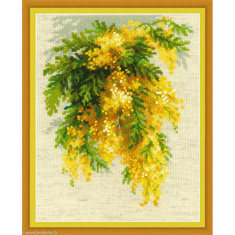 L'article 'Riolis, kit Mimosa (RI1615)' fait partie de notre assortiment depuis le 24 mai 2017. La gamme Riolis nous vient de Lituanie et propose une grande diversité de kits de points de croix comptés : paysages, animaux, saisons, modèles modernes et rétros, kits faciles et avec perles, reproduction de tableaux de maîtres. Sa particularité est essentiellement d'utiliser pour la plupart de ses kits de la laine très fine, idéale pour donner un aspect soyeux à la broderie. Pensez à bien regarder dans "plus de détails" du kit qui vous intéresse si le kit est avec laine ou mouliné. Tous les kits sont livrés avec de l'aïda 5,5 points/cm (Aïda 14) ou plus large (marqué aïda 10). il est cependant facile changer de trame, sauf pour les quelques kits ou l'aïda est imprimé par un dessin dans le fonds (références commençant par RIPT). Les kits mentionnés comme "facile" le sont car ils sont brodés sur de l'aïda 4.5 points/cm, mais ne sont pas conseillés pour un premier ouvrage d'enfant, car la plupart sont livrés avec de la lainev :-) Explication en russe et en anglais