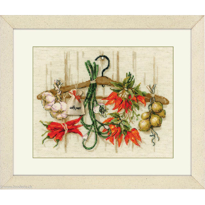 L'article 'Riolis, kit Spicy Condiments (RI1794)' fait partie de notre assortiment depuis le 28 février 2019. La gamme Riolis nous vient de Lituanie et propose une grande diversité de kits de points de croix comptés : paysages, animaux, saisons, modèles modernes et rétros, kits faciles et avec perles, reproduction de tableaux de maîtres. Sa particularité est essentiellement d'utiliser pour la plupart de ses kits de la laine très fine, idéale pour donner un aspect soyeux à la broderie. Pensez à bien regarder dans "plus de détails" du kit qui vous intéresse si le kit est avec laine ou mouliné. Tous les kits sont livrés avec de l'aïda 5,5 points/cm (Aïda 14) ou plus large (marqué aïda 10). il est cependant facile changer de trame, sauf pour les quelques kits ou l'aïda est imprimé par un dessin dans le fonds (références commençant par RIPT). Les kits mentionnés comme "facile" le sont car ils sont brodés sur de l'aïda 4.5 points/cm, mais ne sont pas conseillés pour un premier ouvrage d'enfant, car la plupart sont livrés avec de la lainev :-) Explication en russe et en anglais
