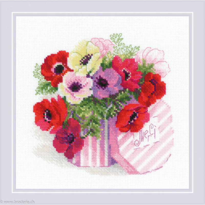 L'article 'Riolis, kit Merci erci (RI1824)' fait partie de notre assortiment depuis le 24 octobre 2019. La gamme Riolis nous vient de Lituanie et propose une grande diversité de kits de points de croix comptés : paysages, animaux, saisons, modèles modernes et rétros, kits faciles et avec perles, reproduction de tableaux de maîtres. Sa particularité est essentiellement d'utiliser pour la plupart de ses kits de la laine très fine, idéale pour donner un aspect soyeux à la broderie. Pensez à bien regarder dans "plus de détails" du kit qui vous intéresse si le kit est avec laine ou mouliné. Tous les kits sont livrés avec de l'aïda 5,5 points/cm (Aïda 14) ou plus large (marqué aïda 10). il est cependant facile changer de trame, sauf pour les quelques kits ou l'aïda est imprimé par un dessin dans le fonds (références commençant par RIPT). Les kits mentionnés comme "facile" le sont car ils sont brodés sur de l'aïda 4.5 points/cm, mais ne sont pas conseillés pour un premier ouvrage d'enfant, car la plupart sont livrés avec de la lainev :-) Explication en russe et en anglais