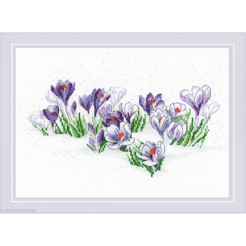 L'article 'Riolis, kit Crocuses under the Snow (RI1855)' fait partie de notre assortiment depuis le 25 juillet 2020. La gamme Riolis nous vient de Lituanie et propose une grande diversité de kits de points de croix comptés : paysages, animaux, saisons, modèles modernes et rétros, kits faciles et avec perles, reproduction de tableaux de maîtres. Sa particularité est essentiellement d'utiliser pour la plupart de ses kits de la laine très fine, idéale pour donner un aspect soyeux à la broderie. Pensez à bien regarder dans "plus de détails" du kit qui vous intéresse si le kit est avec laine ou mouliné. Tous les kits sont livrés avec de l'aïda 5,5 points/cm (Aïda 14) ou plus large (marqué aïda 10). il est cependant facile changer de trame, sauf pour les quelques kits ou l'aïda est imprimé par un dessin dans le fonds (références commençant par RIPT). Les kits mentionnés comme "facile" le sont car ils sont brodés sur de l'aïda 4.5 points/cm, mais ne sont pas conseillés pour un premier ouvrage d'enfant, car la plupart sont livrés avec de la lainev :-) Explication en russe et en anglais