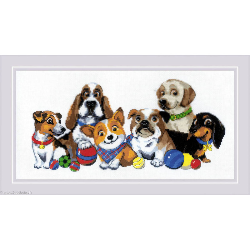 L'article 'Riolis, kit Dog Show (RI1923)' fait partie de notre assortiment depuis le 22 avril 2021. La gamme Riolis nous vient de Lituanie et propose une grande diversité de kits de points de croix comptés : paysages, animaux, saisons, modèles modernes et rétros, kits faciles et avec perles, reproduction de tableaux de maîtres. Sa particularité est essentiellement d'utiliser pour la plupart de ses kits de la laine très fine, idéale pour donner un aspect soyeux à la broderie. Pensez à bien regarder dans "plus de détails" du kit qui vous intéresse si le kit est avec laine ou mouliné. Tous les kits sont livrés avec de l'aïda 5,5 points/cm (Aïda 14) ou plus large (marqué aïda 10). il est cependant facile changer de trame, sauf pour les quelques kits ou l'aïda est imprimé par un dessin dans le fonds (références commençant par RIPT). Les kits mentionnés comme "facile" le sont car ils sont brodés sur de l'aïda 4.5 points/cm, mais ne sont pas conseillés pour un premier ouvrage d'enfant, car la plupart sont livrés avec de la lainev :-) Explication en russe et en anglais