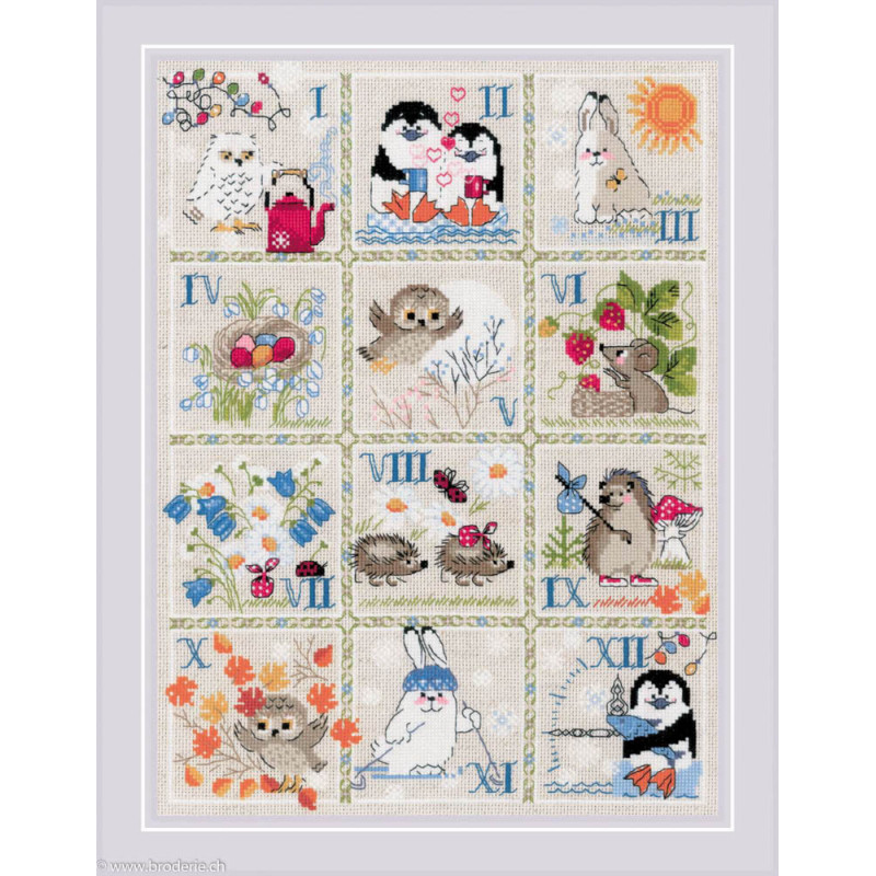 L'article 'Riolis, kit Forest Calendar (RI1979)' fait partie de notre assortiment depuis le 13 novembre 2021. La gamme Riolis nous vient de Lituanie et propose une grande diversité de kits de points de croix comptés : paysages, animaux, saisons, modèles modernes et rétros, kits faciles et avec perles, reproduction de tableaux de maîtres. Sa particularité est essentiellement d'utiliser pour la plupart de ses kits de la laine très fine, idéale pour donner un aspect soyeux à la broderie. Pensez à bien regarder dans "plus de détails" du kit qui vous intéresse si le kit est avec laine ou mouliné. Tous les kits sont livrés avec de l'aïda 5,5 points/cm (Aïda 14) ou plus large (marqué aïda 10). il est cependant facile changer de trame, sauf pour les quelques kits ou l'aïda est imprimé par un dessin dans le fonds (références commençant par RIPT). Les kits mentionnés comme "facile" le sont car ils sont brodés sur de l'aïda 4.5 points/cm, mais ne sont pas conseillés pour un premier ouvrage d'enfant, car la plupart sont livrés avec de la lainev :-) Explication en russe et en anglais