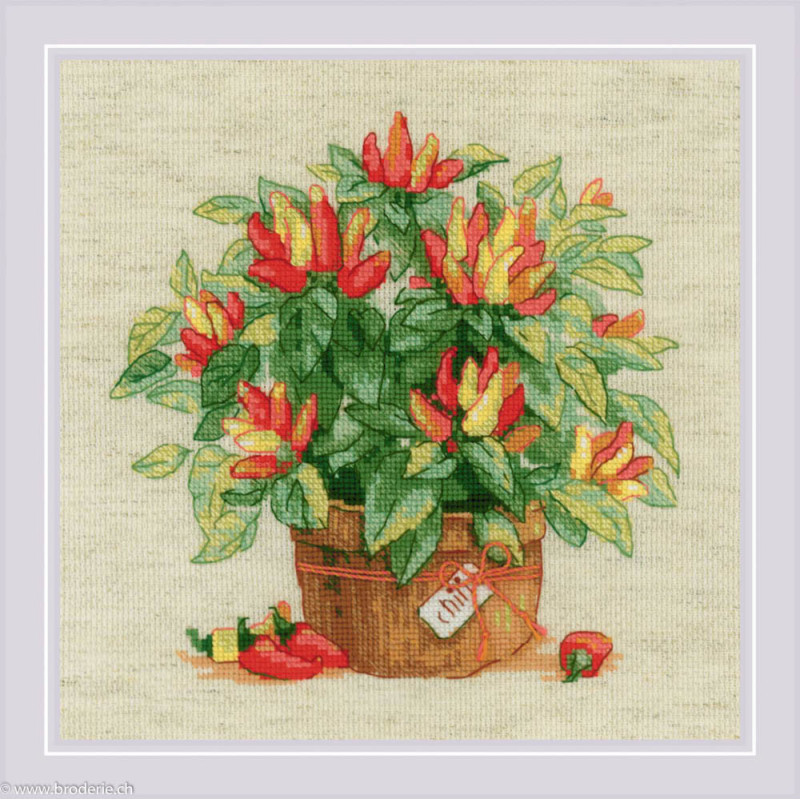 L'article 'Riolis, kit Pepper in a Pot (RI1982)' fait partie de notre assortiment depuis le 13 novembre 2021. La gamme Riolis nous vient de Lituanie et propose une grande diversité de kits de points de croix comptés : paysages, animaux, saisons, modèles modernes et rétros, kits faciles et avec perles, reproduction de tableaux de maîtres. Sa particularité est essentiellement d'utiliser pour la plupart de ses kits de la laine très fine, idéale pour donner un aspect soyeux à la broderie. Pensez à bien regarder dans "plus de détails" du kit qui vous intéresse si le kit est avec laine ou mouliné. Tous les kits sont livrés avec de l'aïda 5,5 points/cm (Aïda 14) ou plus large (marqué aïda 10). il est cependant facile changer de trame, sauf pour les quelques kits ou l'aïda est imprimé par un dessin dans le fonds (références commençant par RIPT). Les kits mentionnés comme "facile" le sont car ils sont brodés sur de l'aïda 4.5 points/cm, mais ne sont pas conseillés pour un premier ouvrage d'enfant, car la plupart sont livrés avec de la lainev :-) Explication en russe et en anglais