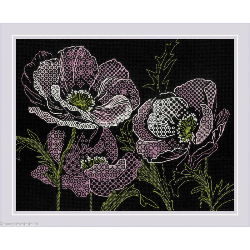L'article 'Riolis, kit Lace poppies (RI1991)' fait partie de notre assortiment depuis le 10 mai 2022. La gamme Riolis nous vient de Lituanie et propose une grande diversité de kits de points de croix comptés : paysages, animaux, saisons, modèles modernes et rétros, kits faciles et avec perles, reproduction de tableaux de maîtres. Sa particularité est essentiellement d'utiliser pour la plupart de ses kits de la laine très fine, idéale pour donner un aspect soyeux à la broderie. Pensez à bien regarder dans "plus de détails" du kit qui vous intéresse si le kit est avec laine ou mouliné. Tous les kits sont livrés avec de l'aïda 5,5 points/cm (Aïda 14) ou plus large (marqué aïda 10). il est cependant facile changer de trame, sauf pour les quelques kits ou l'aïda est imprimé par un dessin dans le fonds (références commençant par RIPT). Les kits mentionnés comme "facile" le sont car ils sont brodés sur de l'aïda 4.5 points/cm, mais ne sont pas conseillés pour un premier ouvrage d'enfant, car la plupart sont livrés avec de la lainev :-) Explication en russe et en anglais
