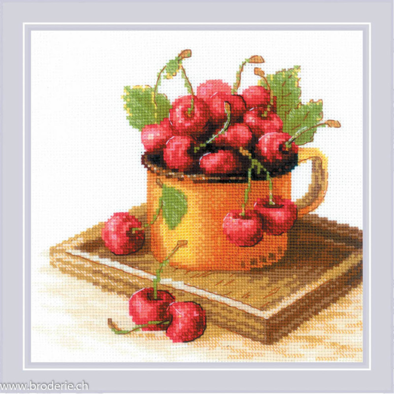 L'article 'Riolis, kit Ripe Cherry (RI2169)' fait partie de notre assortiment depuis le 11 mars 2024. La gamme Riolis nous vient de Lituanie et propose une grande diversité de kits de points de croix comptés : paysages, animaux, saisons, modèles modernes et rétros, kits faciles et avec perles, reproduction de tableaux de maîtres. Sa particularité est essentiellement d'utiliser pour la plupart de ses kits de la laine très fine, idéale pour donner un aspect soyeux à la broderie. Pensez à bien regarder dans "plus de détails" du kit qui vous intéresse si le kit est avec laine ou mouliné. Tous les kits sont livrés avec de l'aïda 5,5 points/cm (Aïda 14) ou plus large (marqué aïda 10). il est cependant facile changer de trame, sauf pour les quelques kits ou l'aïda est imprimé par un dessin dans le fonds (références commençant par RIPT). Les kits mentionnés comme "facile" le sont car ils sont brodés sur de l'aïda 4.5 points/cm, mais ne sont pas conseillés pour un premier ouvrage d'enfant, car la plupart sont livrés avec de la lainev :-) Explication en russe et en anglais
