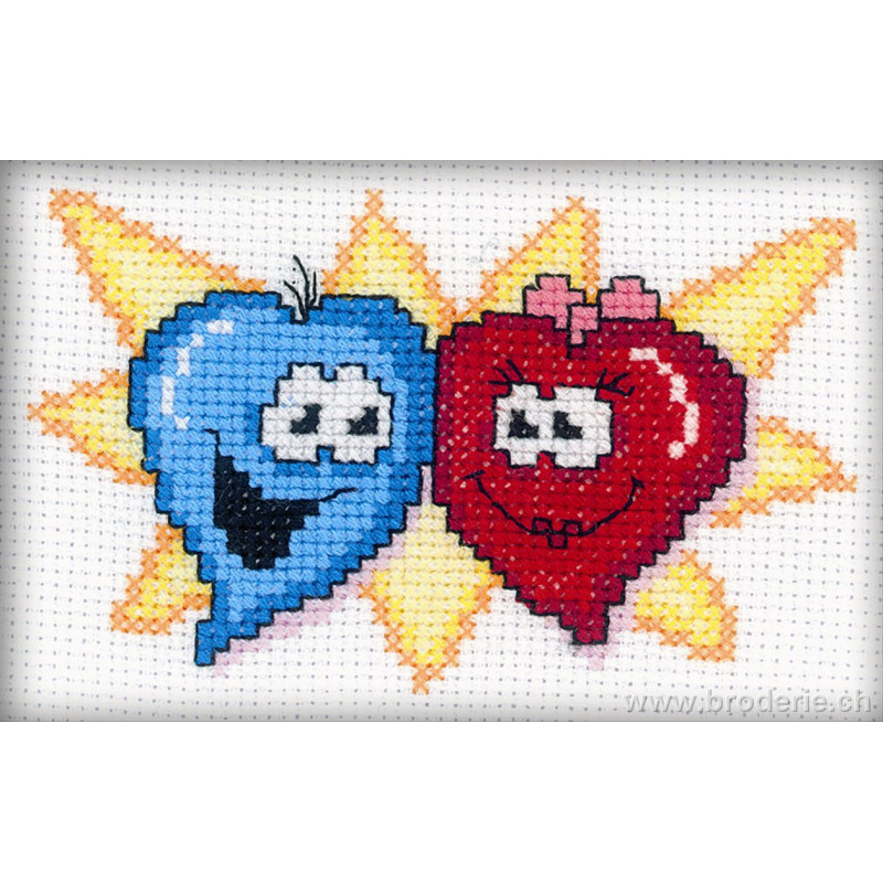 L'article 'RTO, petit kit amour (RTOH117)' fait partie de notre assortiment depuis le 26 juillet 2011. Voilà une sympathique gamme de points de croix comptés, tous livrés en kit aur aïda. RTO nous vient d'Estonie et propose de ravissants kits sur pleins de sujets différents, allant des fleurs, aux animuax et tableaux rétro des années 60, et aussi bien des motifs rigolos avec des animaux. Lorsque un modèle comprends des "frères" du même style, les références sont notées dans le détail. Vous trouverez aussi plein de petits kits à 6.- et moins, idéeaux pour commencer le point de croix ... ou pour simplement avoir le motif et les cotons pour un modèle à broder sur autre support: pour cette recherche, mettez "RTO, petit kit " et vous les voyez rapidement. RTO propose ses kits avec le cotons mouliné DMC art 117. Explication dans les kits en russe et en anglais.