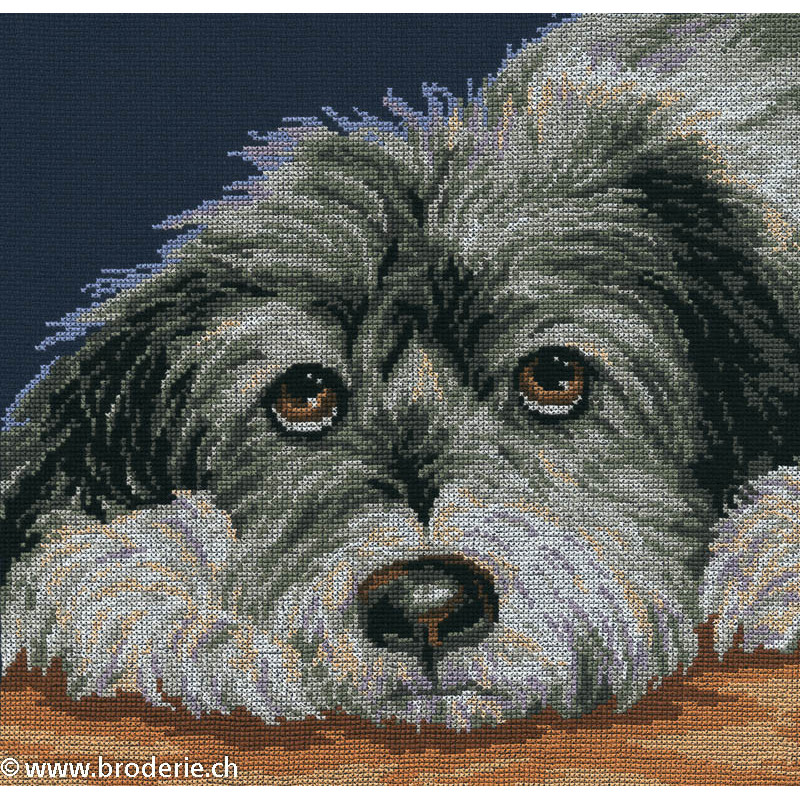 L'article 'RTO, kit Dog Melancholly (RTOM413)' fait partie de notre assortiment depuis le 28 mars 2014. Voilà une sympathique gamme de points de croix comptés, tous livrés en kit aur aïda. RTO nous vient d'Estonie et propose de ravissants kits sur pleins de sujets différents, allant des fleurs, aux animuax et tableaux rétro des années 60, et aussi bien des motifs rigolos avec des animaux. Lorsque un modèle comprends des "frères" du même style, les références sont notées dans le détail. Vous trouverez aussi plein de petits kits à 6.- et moins, idéeaux pour commencer le point de croix ... ou pour simplement avoir le motif et les cotons pour un modèle à broder sur autre support: pour cette recherche, mettez "RTO, petit kit " et vous les voyez rapidement. RTO propose ses kits avec le cotons mouliné DMC art 117. Explication dans les kits en russe et en anglais.