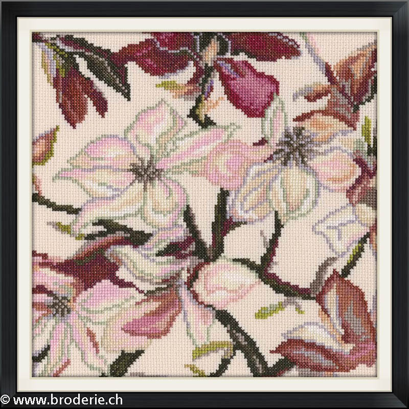 L'article 'RTO, kit Magnolia (RTOM498)' fait partie de notre assortiment depuis le 21 janvier 2015. Voilà une sympathique gamme de points de croix comptés, tous livrés en kit aur aïda. RTO nous vient d'Estonie et propose de ravissants kits sur pleins de sujets différents, allant des fleurs, aux animuax et tableaux rétro des années 60, et aussi bien des motifs rigolos avec des animaux. Lorsque un modèle comprends des "frères" du même style, les références sont notées dans le détail. Vous trouverez aussi plein de petits kits à 6.- et moins, idéeaux pour commencer le point de croix ... ou pour simplement avoir le motif et les cotons pour un modèle à broder sur autre support: pour cette recherche, mettez "RTO, petit kit " et vous les voyez rapidement. RTO propose ses kits avec le cotons mouliné DMC art 117. Explication dans les kits en russe et en anglais.