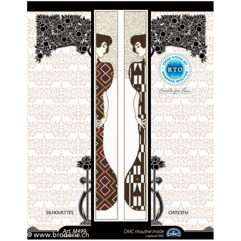 L'article 'RTO, kit "Silhouettes" (RTOM499)' fait partie de notre assortiment depuis le 30 janvier 2015. Voilà une sympathique gamme de points de croix comptés, tous livrés en kit aur aïda. RTO nous vient d'Estonie et propose de ravissants kits sur pleins de sujets différents, allant des fleurs, aux animuax et tableaux rétro des années 60, et aussi bien des motifs rigolos avec des animaux. Lorsque un modèle comprends des "frères" du même style, les références sont notées dans le détail. Vous trouverez aussi plein de petits kits à 6.- et moins, idéeaux pour commencer le point de croix ... ou pour simplement avoir le motif et les cotons pour un modèle à broder sur autre support: pour cette recherche, mettez "RTO, petit kit " et vous les voyez rapidement. RTO propose ses kits avec le cotons mouliné DMC art 117. Explication dans les kits en russe et en anglais.