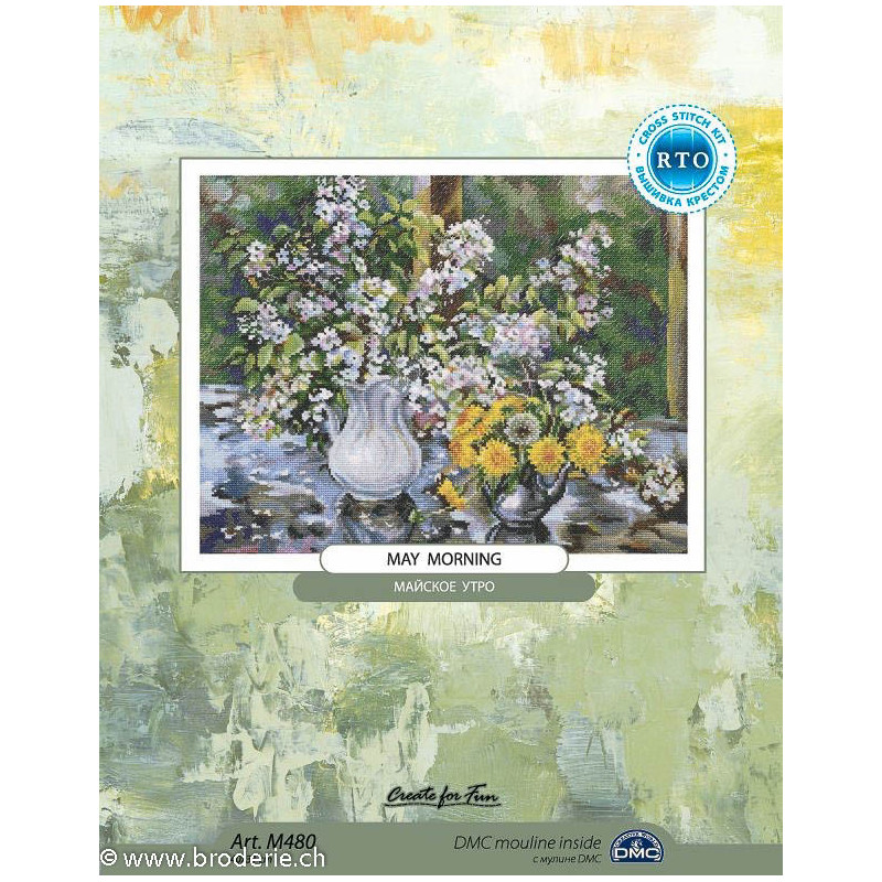 L'article 'RTO, kit May Morning (RTOM480)' fait partie de notre assortiment depuis le 2 mars 2015. Voilà une sympathique gamme de points de croix comptés, tous livrés en kit aur aïda. RTO nous vient d'Estonie et propose de ravissants kits sur pleins de sujets différents, allant des fleurs, aux animuax et tableaux rétro des années 60, et aussi bien des motifs rigolos avec des animaux. Lorsque un modèle comprends des "frères" du même style, les références sont notées dans le détail. Vous trouverez aussi plein de petits kits à 6.- et moins, idéeaux pour commencer le point de croix ... ou pour simplement avoir le motif et les cotons pour un modèle à broder sur autre support: pour cette recherche, mettez "RTO, petit kit " et vous les voyez rapidement. RTO propose ses kits avec le cotons mouliné DMC art 117. Explication dans les kits en russe et en anglais.