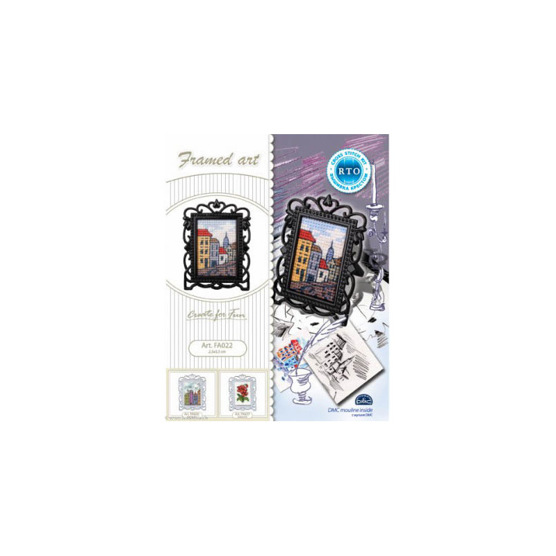 L'article 'RTO, kit miniature avec cadre, Rue et maisons (RTOFA022)' fait partie de notre assortiment depuis le 30 mars 2016. Voilà une sympathique gamme de points de croix comptés, tous livrés en kit aur aïda. RTO nous vient d'Estonie et propose de ravissants kits sur pleins de sujets différents, allant des fleurs, aux animuax et tableaux rétro des années 60, et aussi bien des motifs rigolos avec des animaux. Lorsque un modèle comprends des "frères" du même style, les références sont notées dans le détail. Vous trouverez aussi plein de petits kits à 6.- et moins, idéeaux pour commencer le point de croix ... ou pour simplement avoir le motif et les cotons pour un modèle à broder sur autre support: pour cette recherche, mettez "RTO, petit kit " et vous les voyez rapidement. RTO propose ses kits avec le cotons mouliné DMC art 117. Explication dans les kits en russe et en anglais.