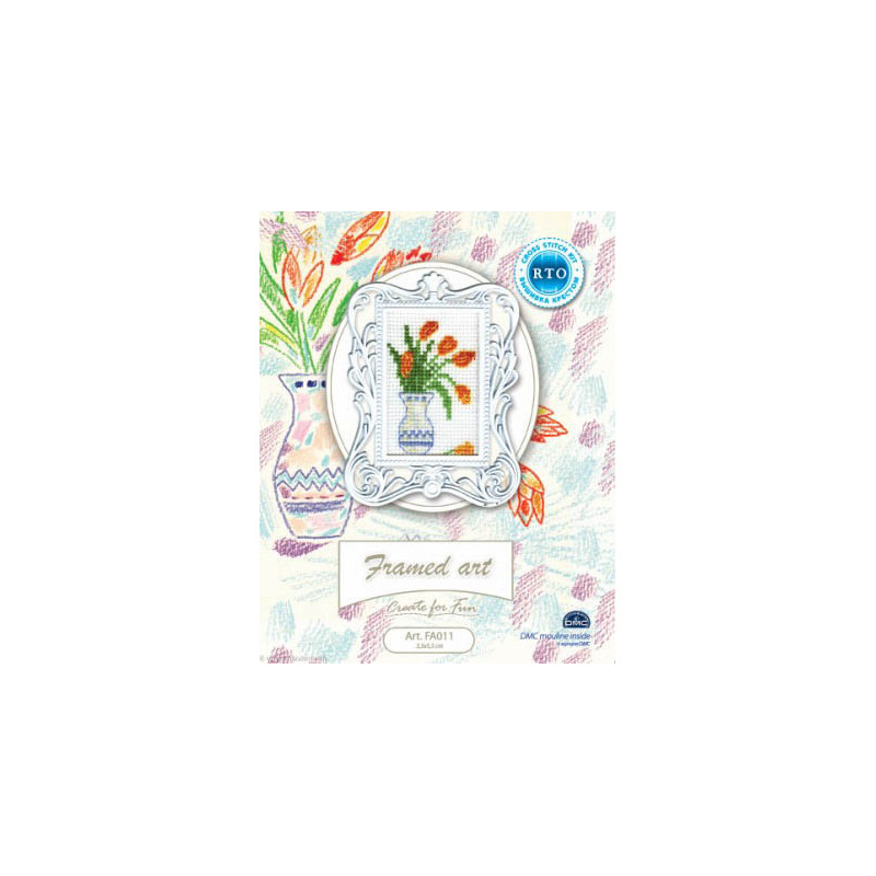 L'article 'RTO, kit miniature avec cadre, Tulipes (RTOFA011)' fait partie de notre assortiment depuis le 30 mars 2016. Voilà une sympathique gamme de points de croix comptés, tous livrés en kit aur aïda. RTO nous vient d'Estonie et propose de ravissants kits sur pleins de sujets différents, allant des fleurs, aux animuax et tableaux rétro des années 60, et aussi bien des motifs rigolos avec des animaux. Lorsque un modèle comprends des "frères" du même style, les références sont notées dans le détail. Vous trouverez aussi plein de petits kits à 6.- et moins, idéeaux pour commencer le point de croix ... ou pour simplement avoir le motif et les cotons pour un modèle à broder sur autre support: pour cette recherche, mettez "RTO, petit kit " et vous les voyez rapidement. RTO propose ses kits avec le cotons mouliné DMC art 117. Explication dans les kits en russe et en anglais.