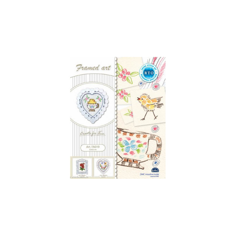 L'article 'RTO, kit miniature avec cadre, Poussins (RTOFA019)' fait partie de notre assortiment depuis le 30 mars 2016. Voilà une sympathique gamme de points de croix comptés, tous livrés en kit aur aïda. RTO nous vient d'Estonie et propose de ravissants kits sur pleins de sujets différents, allant des fleurs, aux animuax et tableaux rétro des années 60, et aussi bien des motifs rigolos avec des animaux. Lorsque un modèle comprends des "frères" du même style, les références sont notées dans le détail. Vous trouverez aussi plein de petits kits à 6.- et moins, idéeaux pour commencer le point de croix ... ou pour simplement avoir le motif et les cotons pour un modèle à broder sur autre support: pour cette recherche, mettez "RTO, petit kit " et vous les voyez rapidement. RTO propose ses kits avec le cotons mouliné DMC art 117. Explication dans les kits en russe et en anglais.