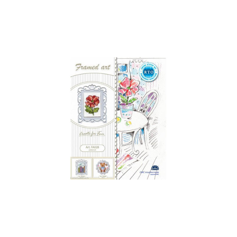 L'article 'RTO, kit miniature avec cadre, Fleurs (RTOFA028)' fait partie de notre assortiment depuis le 30 mars 2016. Voilà une sympathique gamme de points de croix comptés, tous livrés en kit aur aïda. RTO nous vient d'Estonie et propose de ravissants kits sur pleins de sujets différents, allant des fleurs, aux animuax et tableaux rétro des années 60, et aussi bien des motifs rigolos avec des animaux. Lorsque un modèle comprends des "frères" du même style, les références sont notées dans le détail. Vous trouverez aussi plein de petits kits à 6.- et moins, idéeaux pour commencer le point de croix ... ou pour simplement avoir le motif et les cotons pour un modèle à broder sur autre support: pour cette recherche, mettez "RTO, petit kit " et vous les voyez rapidement. RTO propose ses kits avec le cotons mouliné DMC art 117. Explication dans les kits en russe et en anglais.