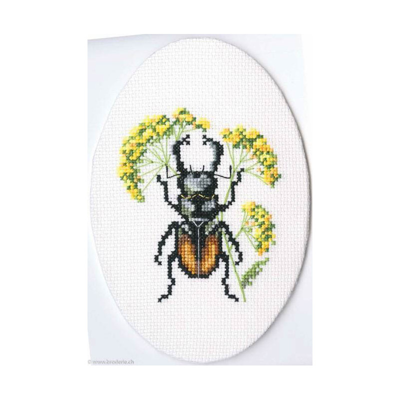 L'article 'RTO, kit Bug on hair's ear (RTOEH366)' fait partie de notre assortiment depuis le 25 mars 2017. Voilà une sympathique gamme de points de croix comptés, tous livrés en kit aur aïda. RTO nous vient d'Estonie et propose de ravissants kits sur pleins de sujets différents, allant des fleurs, aux animuax et tableaux rétro des années 60, et aussi bien des motifs rigolos avec des animaux. Lorsque un modèle comprends des "frères" du même style, les références sont notées dans le détail. Vous trouverez aussi plein de petits kits à 6.- et moins, idéeaux pour commencer le point de croix ... ou pour simplement avoir le motif et les cotons pour un modèle à broder sur autre support: pour cette recherche, mettez "RTO, petit kit " et vous les voyez rapidement. RTO propose ses kits avec le cotons mouliné DMC art 117. Explication dans les kits en russe et en anglais.