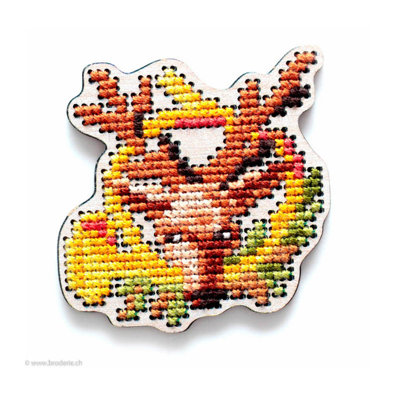 L'article 'RTO, kit sur bois perforé déco - magnet tête de cerf (RTOEHW033)' fait partie de notre assortiment depuis le 28 mars 2019. Voilà une sympathique gamme de points de croix comptés, tous livrés en kit aur aïda. RTO nous vient d'Estonie et propose de ravissants kits sur pleins de sujets différents, allant des fleurs, aux animuax et tableaux rétro des années 60, et aussi bien des motifs rigolos avec des animaux. Lorsque un modèle comprends des "frères" du même style, les références sont notées dans le détail. Vous trouverez aussi plein de petits kits à 6.- et moins, idéeaux pour commencer le point de croix ... ou pour simplement avoir le motif et les cotons pour un modèle à broder sur autre support: pour cette recherche, mettez "RTO, petit kit " et vous les voyez rapidement. RTO propose ses kits avec le cotons mouliné DMC art 117. Explication dans les kits en russe et en anglais.
