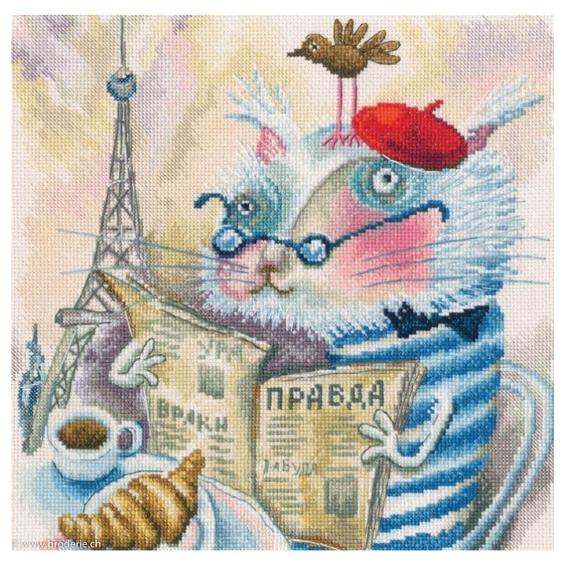 L'article 'RTO, kit Cat reading a book in Paris (RTOM843)' fait partie de notre assortiment depuis le 13 novembre 2021. Voilà une sympathique gamme de points de croix comptés, tous livrés en kit aur aïda. RTO nous vient d'Estonie et propose de ravissants kits sur pleins de sujets différents, allant des fleurs, aux animuax et tableaux rétro des années 60, et aussi bien des motifs rigolos avec des animaux. Lorsque un modèle comprends des "frères" du même style, les références sont notées dans le détail. Vous trouverez aussi plein de petits kits à 6.- et moins, idéeaux pour commencer le point de croix ... ou pour simplement avoir le motif et les cotons pour un modèle à broder sur autre support: pour cette recherche, mettez "RTO, petit kit " et vous les voyez rapidement. RTO propose ses kits avec le cotons mouliné DMC art 117. Explication dans les kits en russe et en anglais.