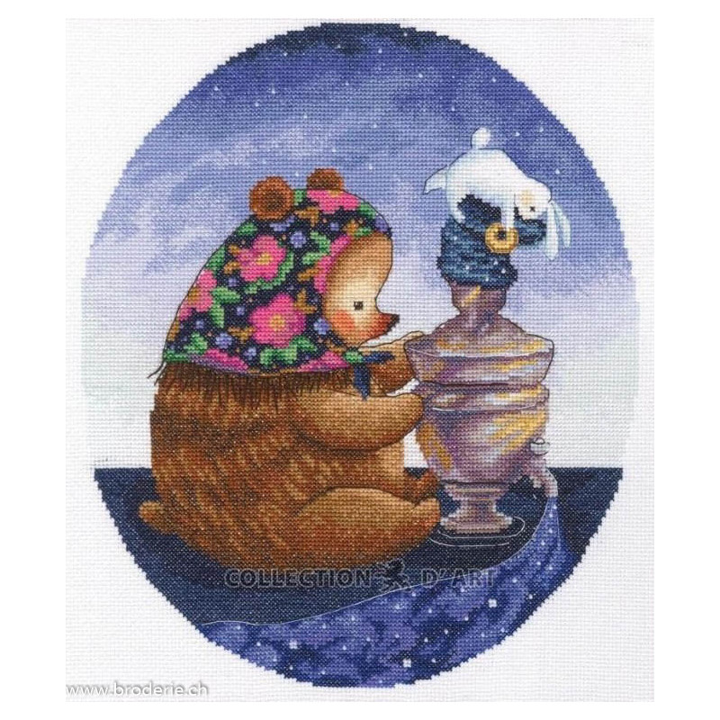 L'article 'RTO, kit By the samovar (RTOM949)' fait partie de notre assortiment depuis le 23 mars 2023. Voilà une sympathique gamme de points de croix comptés, tous livrés en kit aur aïda. RTO nous vient d'Estonie et propose de ravissants kits sur pleins de sujets différents, allant des fleurs, aux animuax et tableaux rétro des années 60, et aussi bien des motifs rigolos avec des animaux. Lorsque un modèle comprends des "frères" du même style, les références sont notées dans le détail. Vous trouverez aussi plein de petits kits à 6.- et moins, idéeaux pour commencer le point de croix ... ou pour simplement avoir le motif et les cotons pour un modèle à broder sur autre support: pour cette recherche, mettez "RTO, petit kit " et vous les voyez rapidement. RTO propose ses kits avec le cotons mouliné DMC art 117. Explication dans les kits en russe et en anglais.