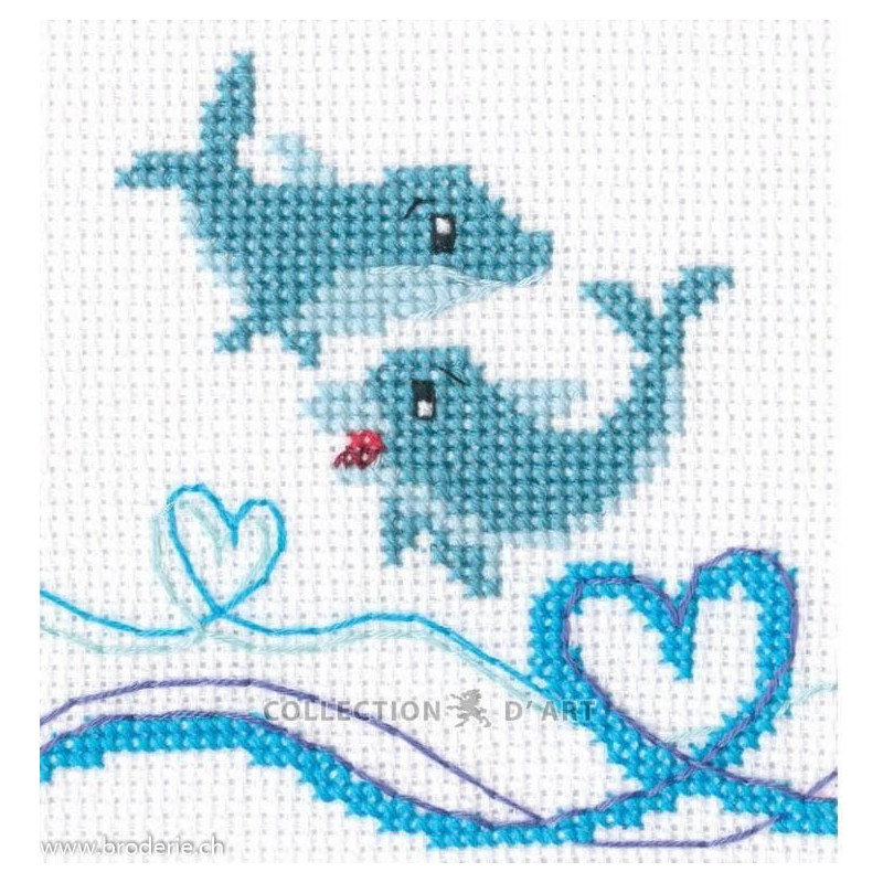 L'article 'RTO, Kit Dolphin couple (RTOH288)' fait partie de notre assortiment depuis le 29 novembre 2023. Voilà une sympathique gamme de points de croix comptés, tous livrés en kit aur aïda. RTO nous vient d'Estonie et propose de ravissants kits sur pleins de sujets différents, allant des fleurs, aux animuax et tableaux rétro des années 60, et aussi bien des motifs rigolos avec des animaux. Lorsque un modèle comprends des "frères" du même style, les références sont notées dans le détail. Vous trouverez aussi plein de petits kits à 6.- et moins, idéeaux pour commencer le point de croix ... ou pour simplement avoir le motif et les cotons pour un modèle à broder sur autre support: pour cette recherche, mettez "RTO, petit kit " et vous les voyez rapidement. RTO propose ses kits avec le cotons mouliné DMC art 117. Explication dans les kits en russe et en anglais.