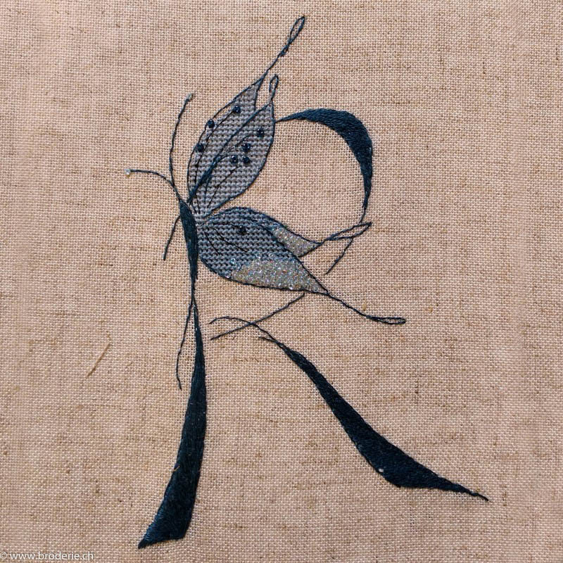 Soizic, grille Initiale au papillon R (SOI49R)