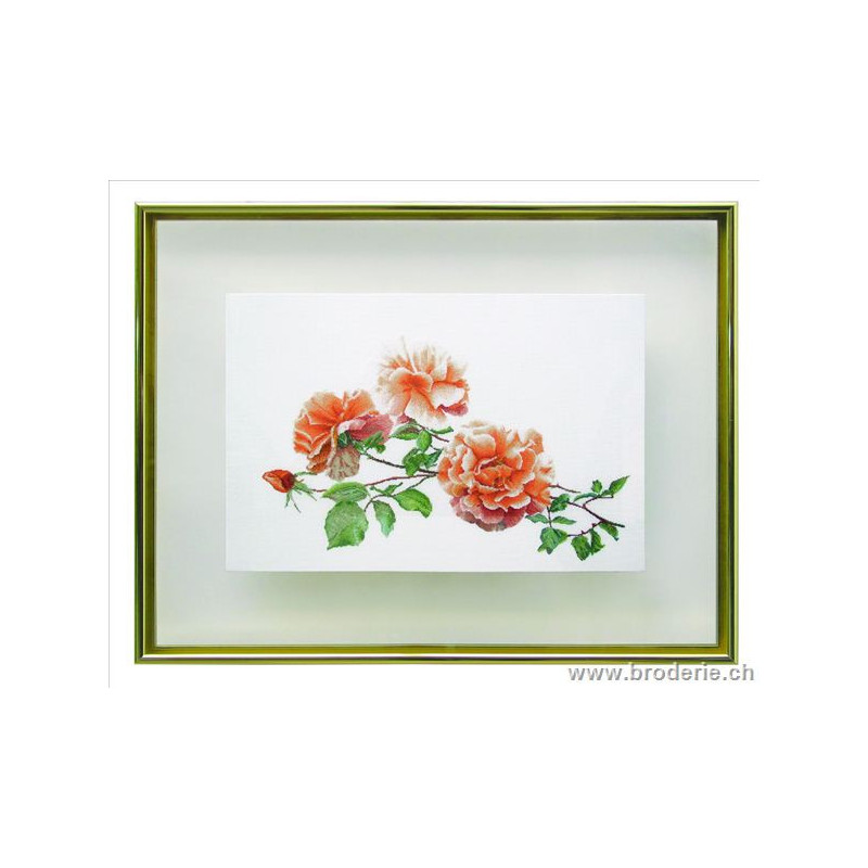 L'article 'Thea Gouverneur, kit Roses (G0414)' fait partie de notre assortiment depuis le 9 février 2010. La gamme Thea Gouverneur est une très belle et riche gamme hollandaise de points de croix comptés. Les kits proposés sur du lin sont tous disponibles sur aïda sur demande, au même tarif. La gamme propose de très grands tableaux à divers thèmes, notamment floraux, sportifs, et aussi de belles villes en couleurs. Vous trouverez aussi de véritables photos de fleurs et de fruits, cieux bleus ou orageux.