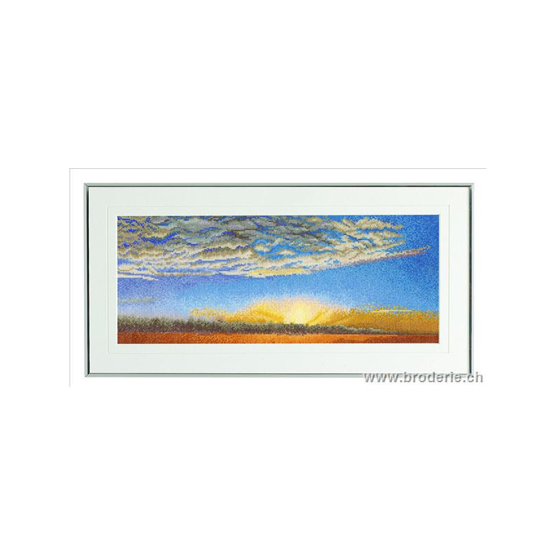 L'article 'Thea Gouverneur, kit le lever du soleil (G0406)' fait partie de notre assortiment depuis le 9 avril 2010. La gamme Thea Gouverneur est une très belle et riche gamme hollandaise de points de croix comptés. Les kits proposés sur du lin sont tous disponibles sur aïda sur demande, au même tarif. La gamme propose de très grands tableaux à divers thèmes, notamment floraux, sportifs, et aussi de belles villes en couleurs. Vous trouverez aussi de véritables photos de fleurs et de fruits, cieux bleus ou orageux.