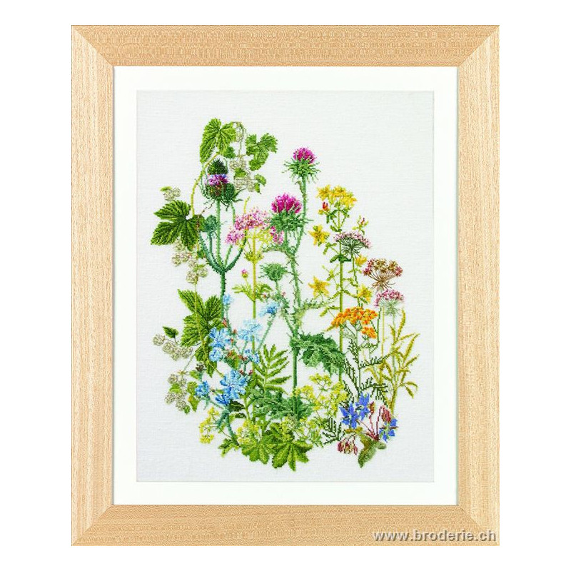 L'article 'Thea Gouverneur, kit Fleurs des champs et herbes (G0424)' fait partie de notre assortiment depuis le 9 avril 2010. La gamme Thea Gouverneur est une très belle et riche gamme hollandaise de points de croix comptés. Les kits proposés sur du lin sont tous disponibles sur aïda sur demande, au même tarif. La gamme propose de très grands tableaux à divers thèmes, notamment floraux, sportifs, et aussi de belles villes en couleurs. Vous trouverez aussi de véritables photos de fleurs et de fruits, cieux bleus ou orageux.
