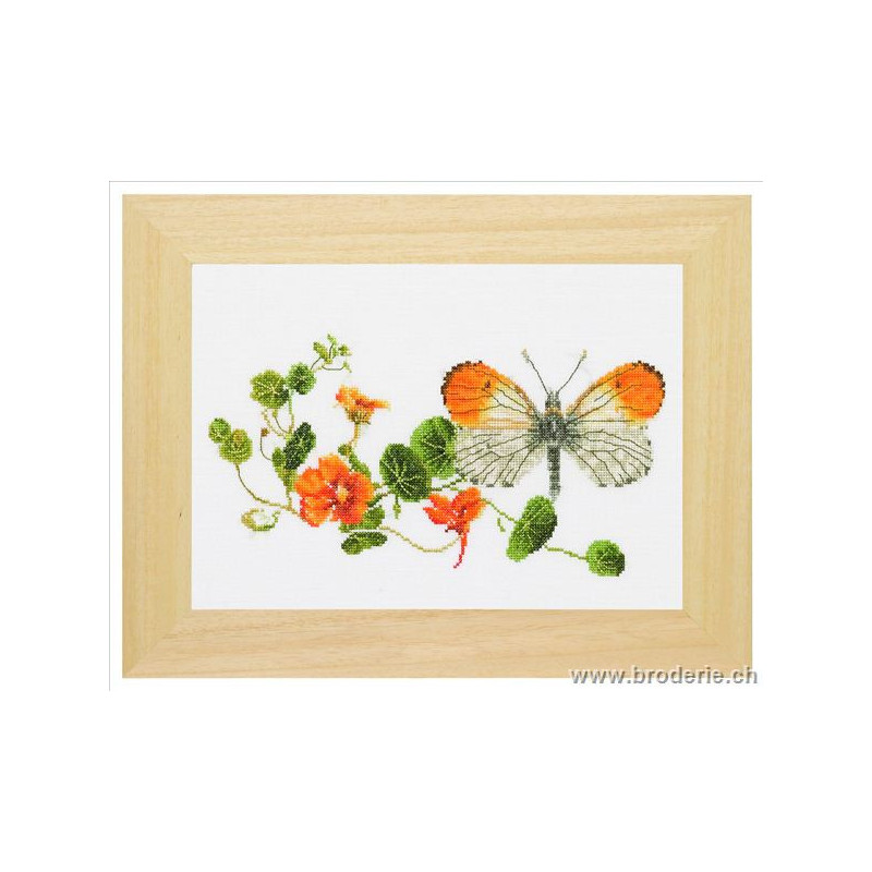 L'article 'Thea Gouverneur, kit papillon et capucines (G0437)' fait partie de notre assortiment depuis le 9 avril 2010. La gamme Thea Gouverneur est une très belle et riche gamme hollandaise de points de croix comptés. Les kits proposés sur du lin sont tous disponibles sur aïda sur demande, au même tarif. La gamme propose de très grands tableaux à divers thèmes, notamment floraux, sportifs, et aussi de belles villes en couleurs. Vous trouverez aussi de véritables photos de fleurs et de fruits, cieux bleus ou orageux.