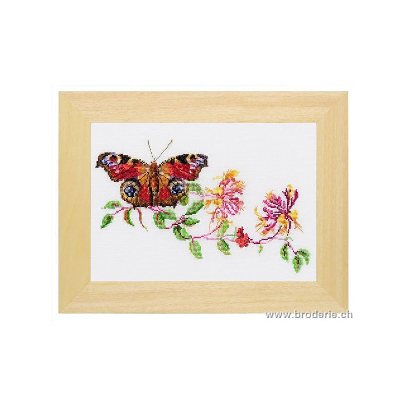 L'article 'Thea Gouverneur, kit papillon et chèvrefeuille (G0439)' fait partie de notre assortiment depuis le 9 avril 2010. La gamme Thea Gouverneur est une très belle et riche gamme hollandaise de points de croix comptés. Les kits proposés sur du lin sont tous disponibles sur aïda sur demande, au même tarif. La gamme propose de très grands tableaux à divers thèmes, notamment floraux, sportifs, et aussi de belles villes en couleurs. Vous trouverez aussi de véritables photos de fleurs et de fruits, cieux bleus ou orageux.