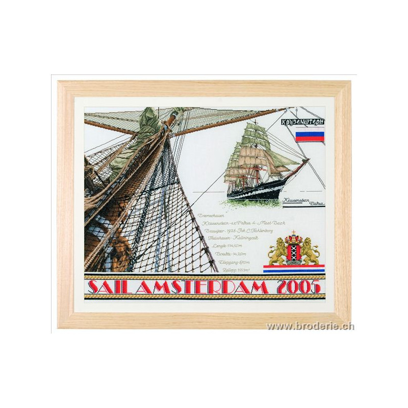 L'article 'Thea Gouverneur, kit Amsterdam Sail 2005 (G0440)' fait partie de notre assortiment depuis le 9 avril 2010. La gamme Thea Gouverneur est une très belle et riche gamme hollandaise de points de croix comptés. Les kits proposés sur du lin sont tous disponibles sur aïda sur demande, au même tarif. La gamme propose de très grands tableaux à divers thèmes, notamment floraux, sportifs, et aussi de belles villes en couleurs. Vous trouverez aussi de véritables photos de fleurs et de fruits, cieux bleus ou orageux.