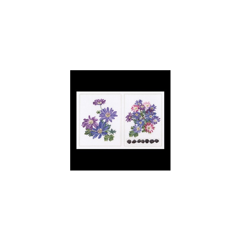 L'article 'Thea Gouverneur, kit Anémones bleues (G0445)' fait partie de notre assortiment depuis le 9 avril 2010. La gamme Thea Gouverneur est une très belle et riche gamme hollandaise de points de croix comptés. Les kits proposés sur du lin sont tous disponibles sur aïda sur demande, au même tarif. La gamme propose de très grands tableaux à divers thèmes, notamment floraux, sportifs, et aussi de belles villes en couleurs. Vous trouverez aussi de véritables photos de fleurs et de fruits, cieux bleus ou orageux.