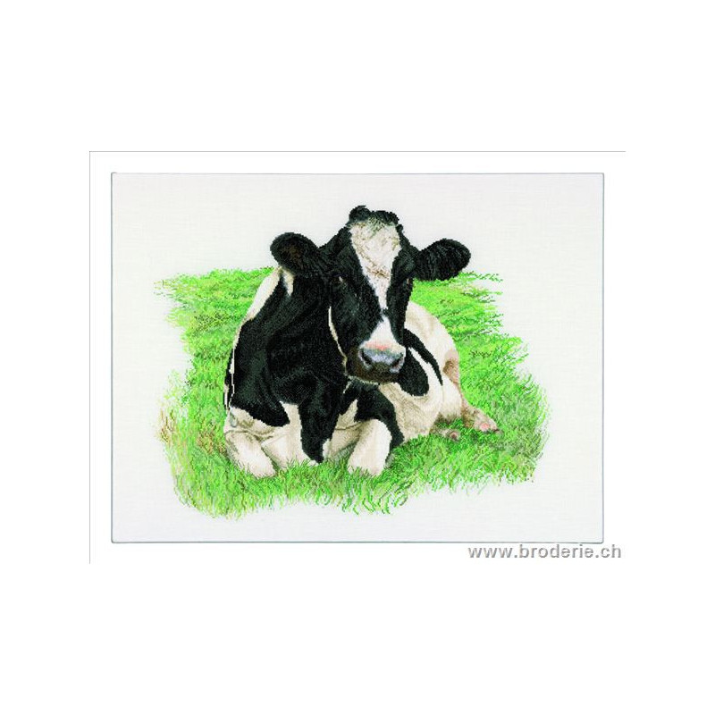 L'article 'Thea Gouverneur, kit vache fribourgeoise (G0451)' fait partie de notre assortiment depuis le 9 avril 2010. La gamme Thea Gouverneur est une très belle et riche gamme hollandaise de points de croix comptés. Les kits proposés sur du lin sont tous disponibles sur aïda sur demande, au même tarif. La gamme propose de très grands tableaux à divers thèmes, notamment floraux, sportifs, et aussi de belles villes en couleurs. Vous trouverez aussi de véritables photos de fleurs et de fruits, cieux bleus ou orageux.