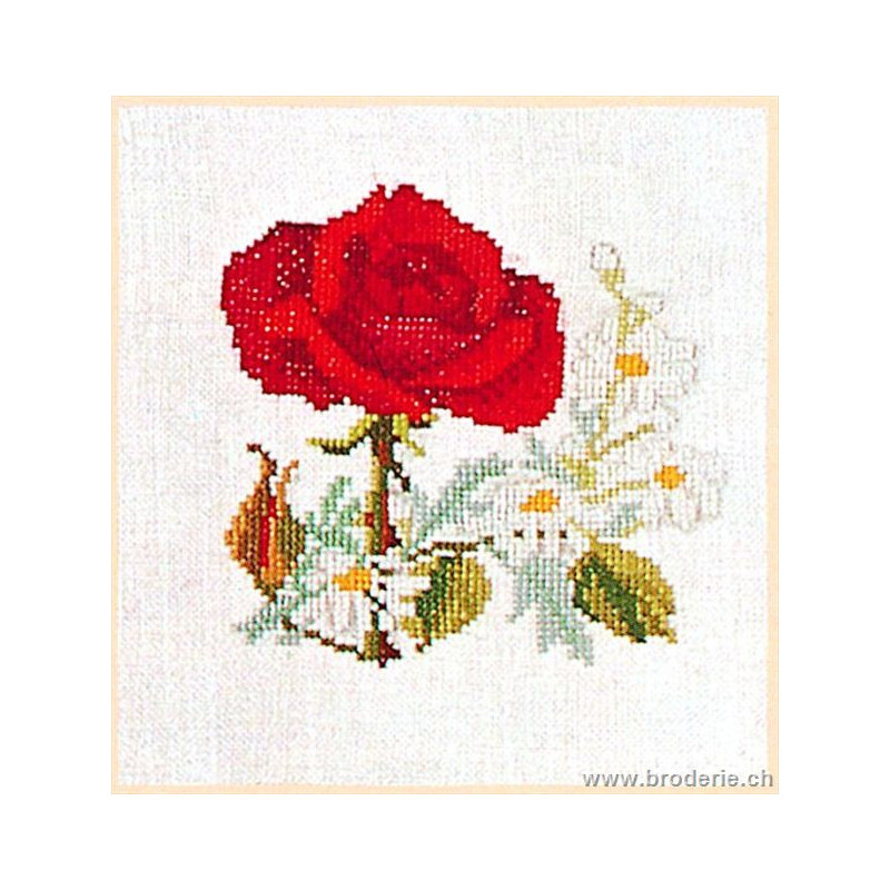 L'article 'Thea Gouverneur, kit Rose rouge et marguerites (G0902)' fait partie de notre assortiment depuis le 9 avril 2010. La gamme Thea Gouverneur est une très belle et riche gamme hollandaise de points de croix comptés. Les kits proposés sur du lin sont tous disponibles sur aïda sur demande, au même tarif. La gamme propose de très grands tableaux à divers thèmes, notamment floraux, sportifs, et aussi de belles villes en couleurs. Vous trouverez aussi de véritables photos de fleurs et de fruits, cieux bleus ou orageux.