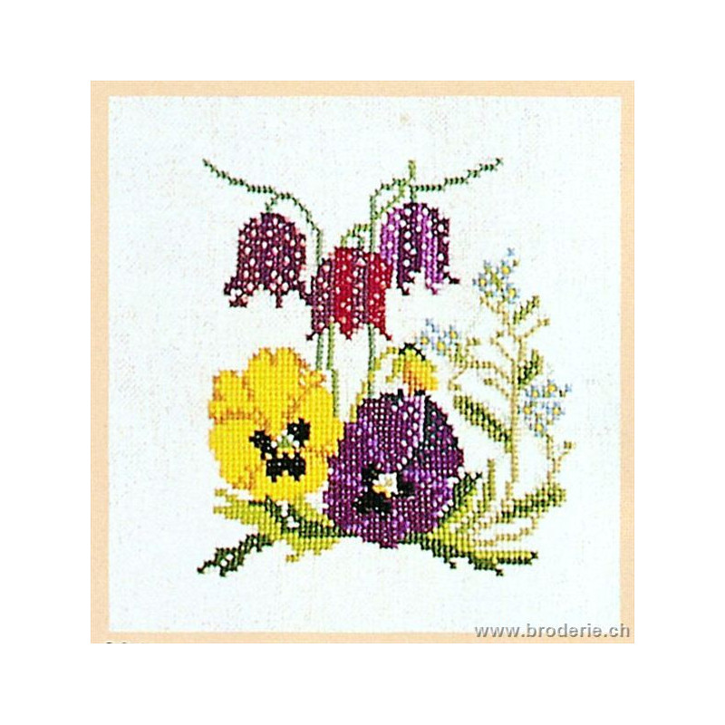 L'article 'Thea Gouverneur, kit pensées clochetttes (G0904)' fait partie de notre assortiment depuis le 9 avril 2010. La gamme Thea Gouverneur est une très belle et riche gamme hollandaise de points de croix comptés. Les kits proposés sur du lin sont tous disponibles sur aïda sur demande, au même tarif. La gamme propose de très grands tableaux à divers thèmes, notamment floraux, sportifs, et aussi de belles villes en couleurs. Vous trouverez aussi de véritables photos de fleurs et de fruits, cieux bleus ou orageux.