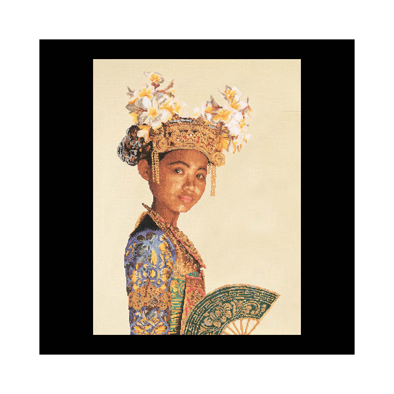 L'article 'Thea Gouverneur, kit femme indonésienne (G0946)' fait partie de notre assortiment depuis le 9 avril 2010. La gamme Thea Gouverneur est une très belle et riche gamme hollandaise de points de croix comptés. Les kits proposés sur du lin sont tous disponibles sur aïda sur demande, au même tarif. La gamme propose de très grands tableaux à divers thèmes, notamment floraux, sportifs, et aussi de belles villes en couleurs. Vous trouverez aussi de véritables photos de fleurs et de fruits, cieux bleus ou orageux.