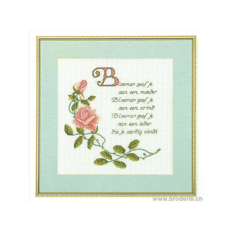 L'article 'Thea Gouverneur, kit roses et citation (G1060)' fait partie de notre assortiment depuis le 9 avril 2010. La gamme Thea Gouverneur est une très belle et riche gamme hollandaise de points de croix comptés. Les kits proposés sur du lin sont tous disponibles sur aïda sur demande, au même tarif. La gamme propose de très grands tableaux à divers thèmes, notamment floraux, sportifs, et aussi de belles villes en couleurs. Vous trouverez aussi de véritables photos de fleurs et de fruits, cieux bleus ou orageux.