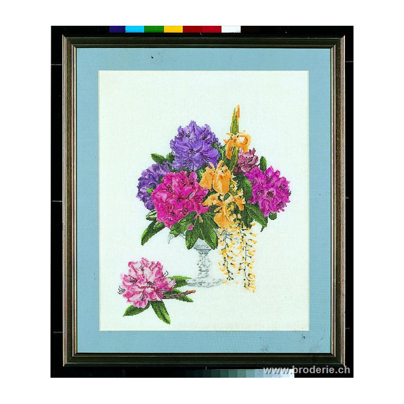 L'article 'Thea Gouverneur, kit Rhododendrons (G1074)' fait partie de notre assortiment depuis le 9 avril 2010. La gamme Thea Gouverneur est une très belle et riche gamme hollandaise de points de croix comptés. Les kits proposés sur du lin sont tous disponibles sur aïda sur demande, au même tarif. La gamme propose de très grands tableaux à divers thèmes, notamment floraux, sportifs, et aussi de belles villes en couleurs. Vous trouverez aussi de véritables photos de fleurs et de fruits, cieux bleus ou orageux.