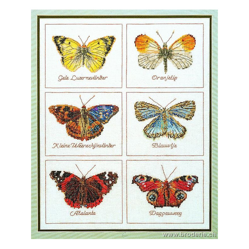 L'article 'Thea Gouverneur, kit Papillons (G2037)' fait partie de notre assortiment depuis le 9 avril 2010. La gamme Thea Gouverneur est une très belle et riche gamme hollandaise de points de croix comptés. Les kits proposés sur du lin sont tous disponibles sur aïda sur demande, au même tarif. La gamme propose de très grands tableaux à divers thèmes, notamment floraux, sportifs, et aussi de belles villes en couleurs. Vous trouverez aussi de véritables photos de fleurs et de fruits, cieux bleus ou orageux.