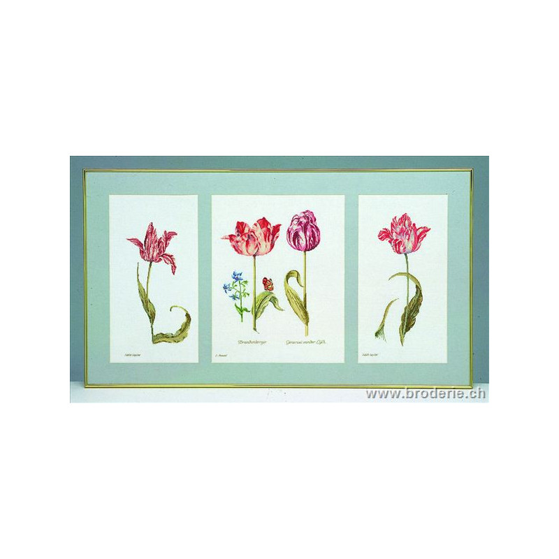 L'article 'Thea Gouverneur, kit tryptique de tulipes (G2039)' fait partie de notre assortiment depuis le 9 avril 2010. La gamme Thea Gouverneur est une très belle et riche gamme hollandaise de points de croix comptés. Les kits proposés sur du lin sont tous disponibles sur aïda sur demande, au même tarif. La gamme propose de très grands tableaux à divers thèmes, notamment floraux, sportifs, et aussi de belles villes en couleurs. Vous trouverez aussi de véritables photos de fleurs et de fruits, cieux bleus ou orageux.