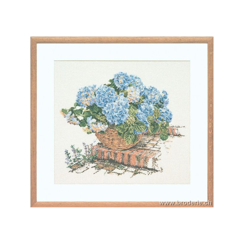 L'article 'Thea Gouverneur, kit pot d'Hortensias bleus (G2046)' fait partie de notre assortiment depuis le 9 avril 2010. La gamme Thea Gouverneur est une très belle et riche gamme hollandaise de points de croix comptés. Les kits proposés sur du lin sont tous disponibles sur aïda sur demande, au même tarif. La gamme propose de très grands tableaux à divers thèmes, notamment floraux, sportifs, et aussi de belles villes en couleurs. Vous trouverez aussi de véritables photos de fleurs et de fruits, cieux bleus ou orageux.