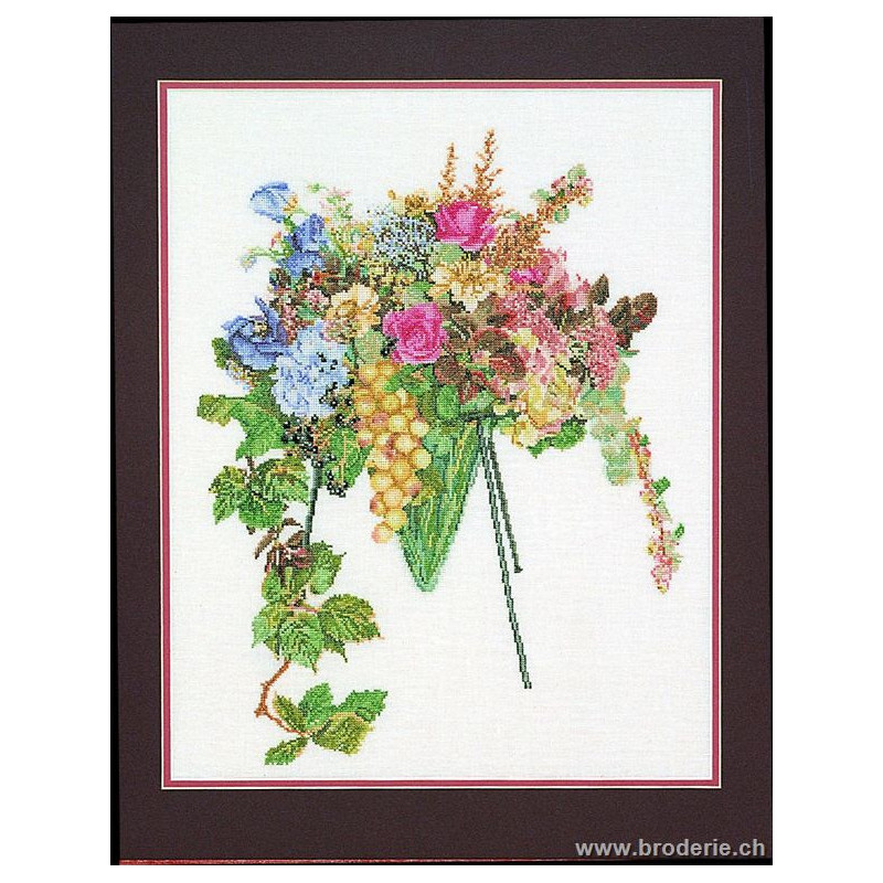 L'article 'Thea Gouverneur, kit bouquet de fleurs et raisins (G2051)' fait partie de notre assortiment depuis le 9 avril 2010. La gamme Thea Gouverneur est une très belle et riche gamme hollandaise de points de croix comptés. Les kits proposés sur du lin sont tous disponibles sur aïda sur demande, au même tarif. La gamme propose de très grands tableaux à divers thèmes, notamment floraux, sportifs, et aussi de belles villes en couleurs. Vous trouverez aussi de véritables photos de fleurs et de fruits, cieux bleus ou orageux.