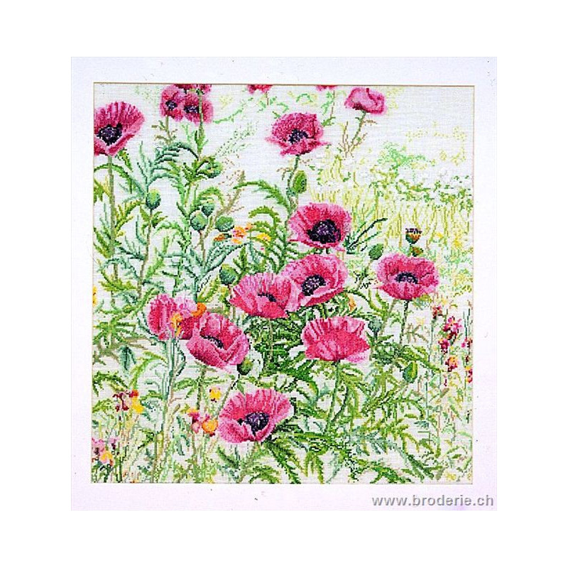 L'article 'Thea Gouverneur, kit Pavots roses (G2061)' fait partie de notre assortiment depuis le 9 avril 2010. La gamme Thea Gouverneur est une très belle et riche gamme hollandaise de points de croix comptés. Les kits proposés sur du lin sont tous disponibles sur aïda sur demande, au même tarif. La gamme propose de très grands tableaux à divers thèmes, notamment floraux, sportifs, et aussi de belles villes en couleurs. Vous trouverez aussi de véritables photos de fleurs et de fruits, cieux bleus ou orageux.