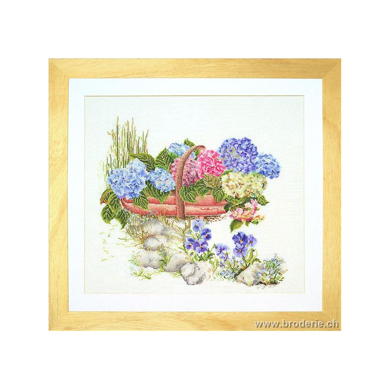 L'article 'Thea Gouverneur, kit panier d'Hortensias bleus blancs roses (G2063)' fait partie de notre assortiment depuis le 9 avril 2010. La gamme Thea Gouverneur est une très belle et riche gamme hollandaise de points de croix comptés. Les kits proposés sur du lin sont tous disponibles sur aïda sur demande, au même tarif. La gamme propose de très grands tableaux à divers thèmes, notamment floraux, sportifs, et aussi de belles villes en couleurs. Vous trouverez aussi de véritables photos de fleurs et de fruits, cieux bleus ou orageux.