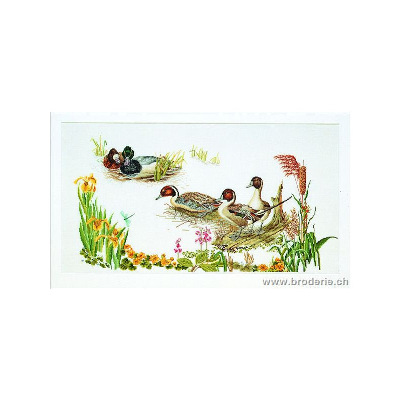 L'article 'Thea Gouverneur, kit mare et canards (G2064)' fait partie de notre assortiment depuis le 9 avril 2010. La gamme Thea Gouverneur est une très belle et riche gamme hollandaise de points de croix comptés. Les kits proposés sur du lin sont tous disponibles sur aïda sur demande, au même tarif. La gamme propose de très grands tableaux à divers thèmes, notamment floraux, sportifs, et aussi de belles villes en couleurs. Vous trouverez aussi de véritables photos de fleurs et de fruits, cieux bleus ou orageux.