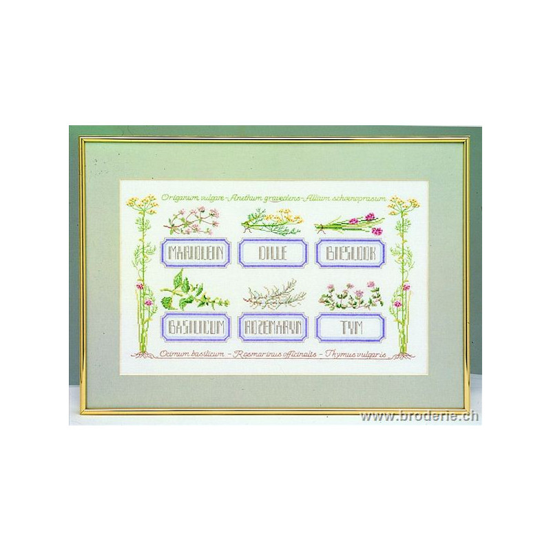 L'article 'Thea Gouverneur, kit Herbes aromatiques (G2076)' fait partie de notre assortiment depuis le 9 avril 2010. La gamme Thea Gouverneur est une très belle et riche gamme hollandaise de points de croix comptés. Les kits proposés sur du lin sont tous disponibles sur aïda sur demande, au même tarif. La gamme propose de très grands tableaux à divers thèmes, notamment floraux, sportifs, et aussi de belles villes en couleurs. Vous trouverez aussi de véritables photos de fleurs et de fruits, cieux bleus ou orageux.