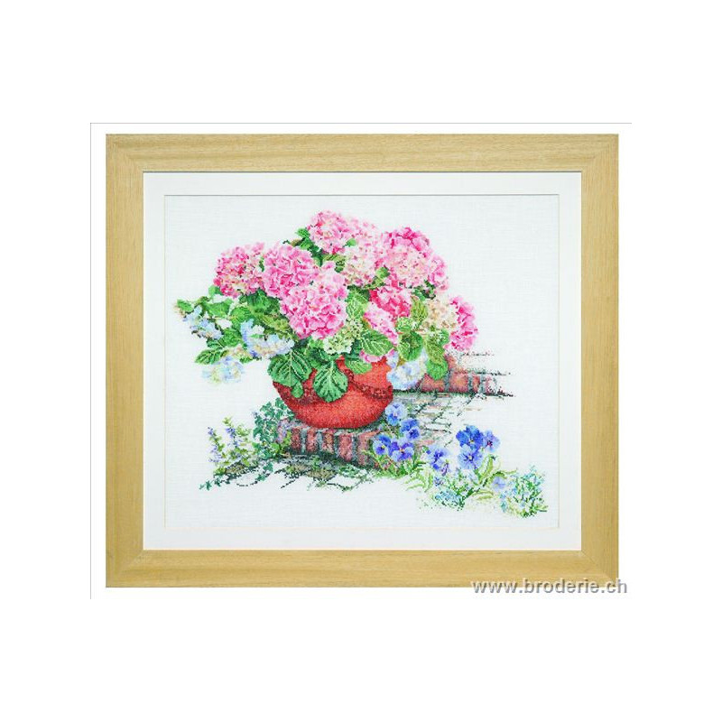 L'article 'Thea Gouverneur, kit pot d'Hortensias roses (G2078)' fait partie de notre assortiment depuis le 9 avril 2010. La gamme Thea Gouverneur est une très belle et riche gamme hollandaise de points de croix comptés. Les kits proposés sur du lin sont tous disponibles sur aïda sur demande, au même tarif. La gamme propose de très grands tableaux à divers thèmes, notamment floraux, sportifs, et aussi de belles villes en couleurs. Vous trouverez aussi de véritables photos de fleurs et de fruits, cieux bleus ou orageux.