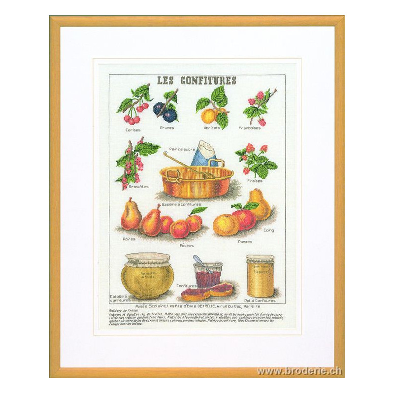 L'article 'Thea Gouverneur, kit les confitures (G2081)' fait partie de notre assortiment depuis le 9 avril 2010. La gamme Thea Gouverneur est une très belle et riche gamme hollandaise de points de croix comptés. Les kits proposés sur du lin sont tous disponibles sur aïda sur demande, au même tarif. La gamme propose de très grands tableaux à divers thèmes, notamment floraux, sportifs, et aussi de belles villes en couleurs. Vous trouverez aussi de véritables photos de fleurs et de fruits, cieux bleus ou orageux.